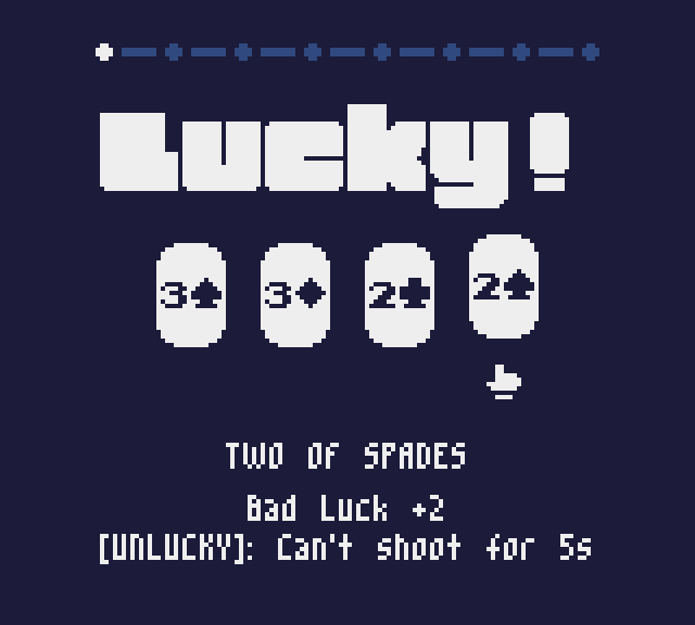 2,3): they increase bad luck and trigger a negative effect during unlucky waves.A-s are lucky cards: they give a bonus proportional to the bad luck stat.